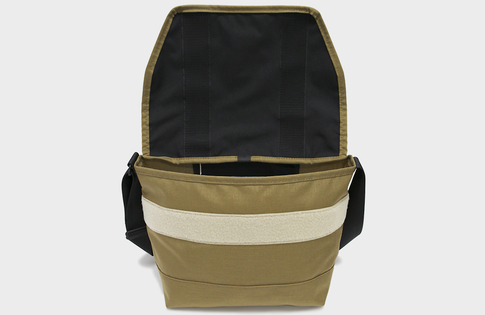 フラップにホワイト刺繍ネームを施し、ベルクロテープは本体と同色を採用。
